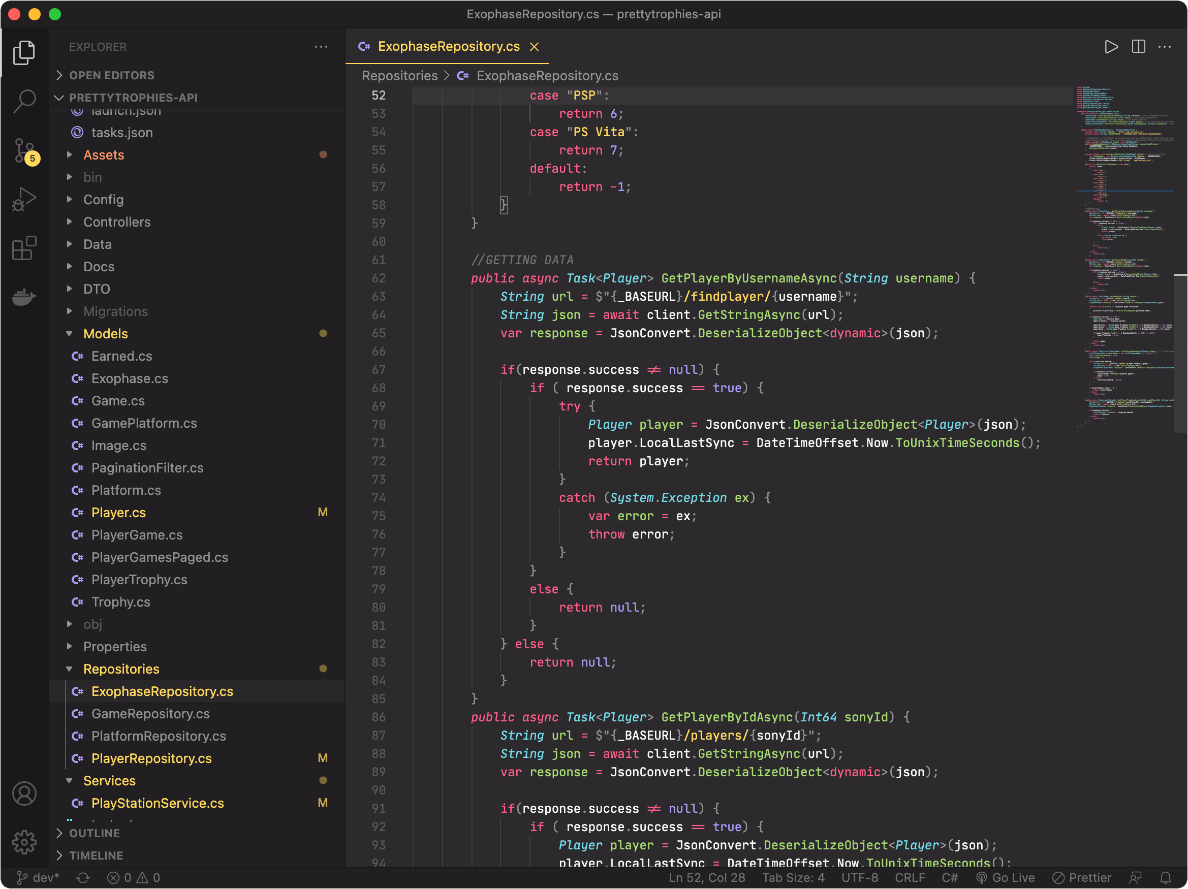 The API used by my PrettyTrophies React Native app, written in .NET