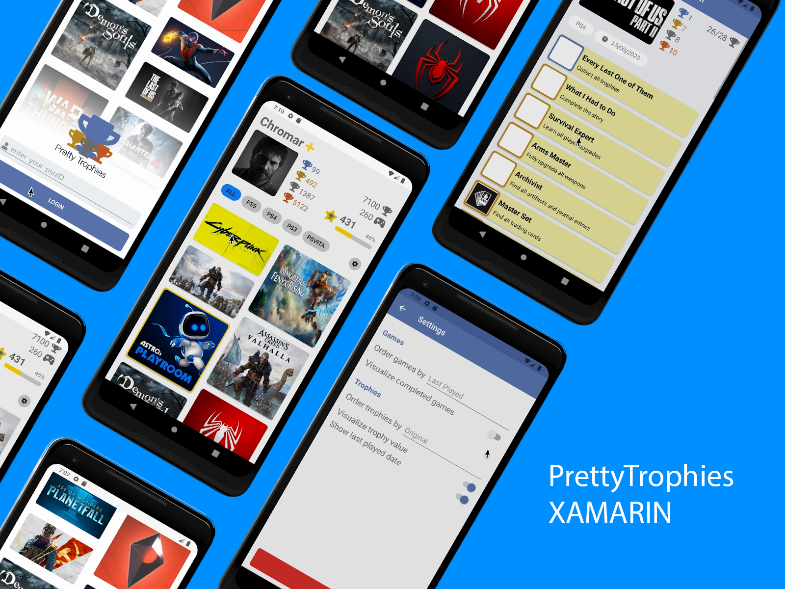 A trophy tracking app written in Xamarin, C#. It shows the various games and achievements you've earned on PlayStation. It uses a custom PHP based API based on psn-php.