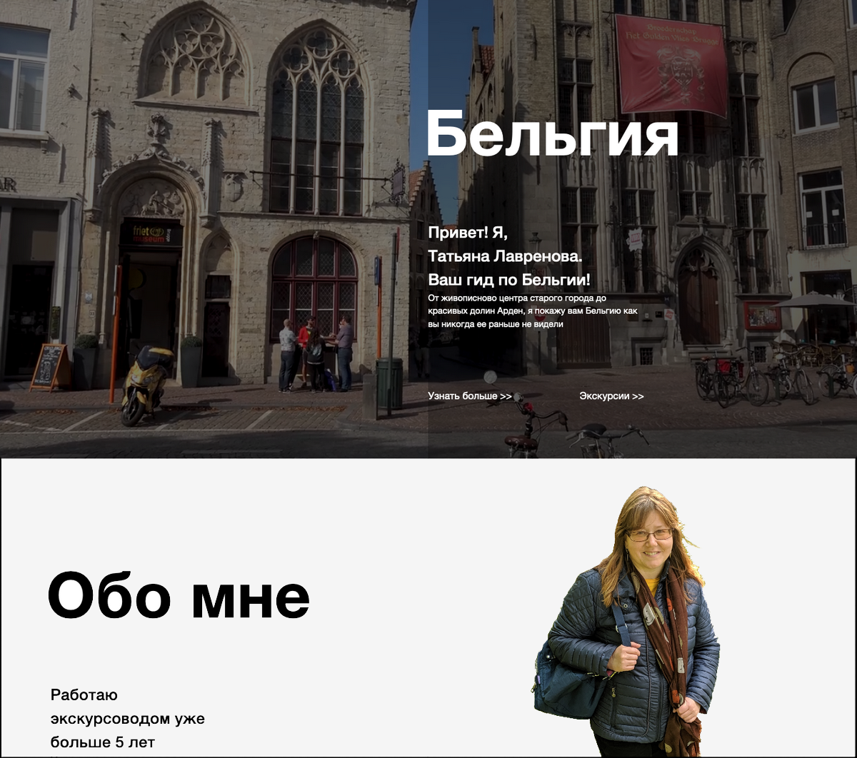Website for a Russian-speaking tour guide in Belgium. I am responsible for everything, from the design to coding and hosting.
